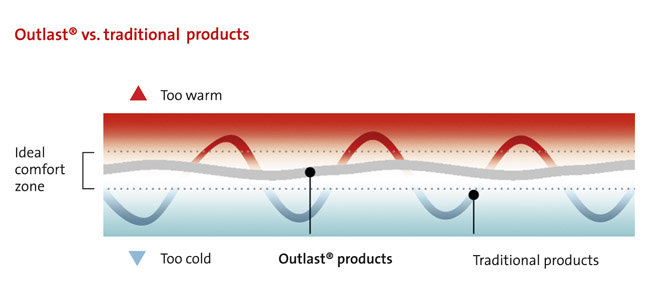 S výrobky s OUTLAST® bude spánek hlubší a kvalitnější. Nebudeme cítit přílišných chlad, ani přílišné horko.